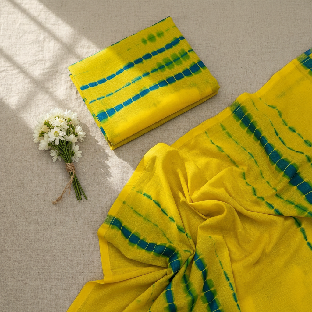 Fabric :Mulmul Cotton Color :Yellow Length :6 Meter Blouse :Running