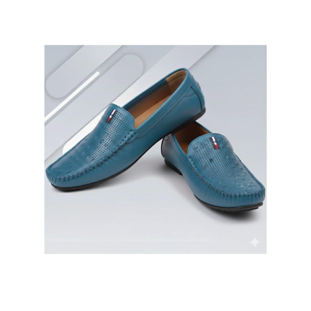 Classic slip-on loafer featuring a sophisticated laser-cut perforated pattern on the vamp. |