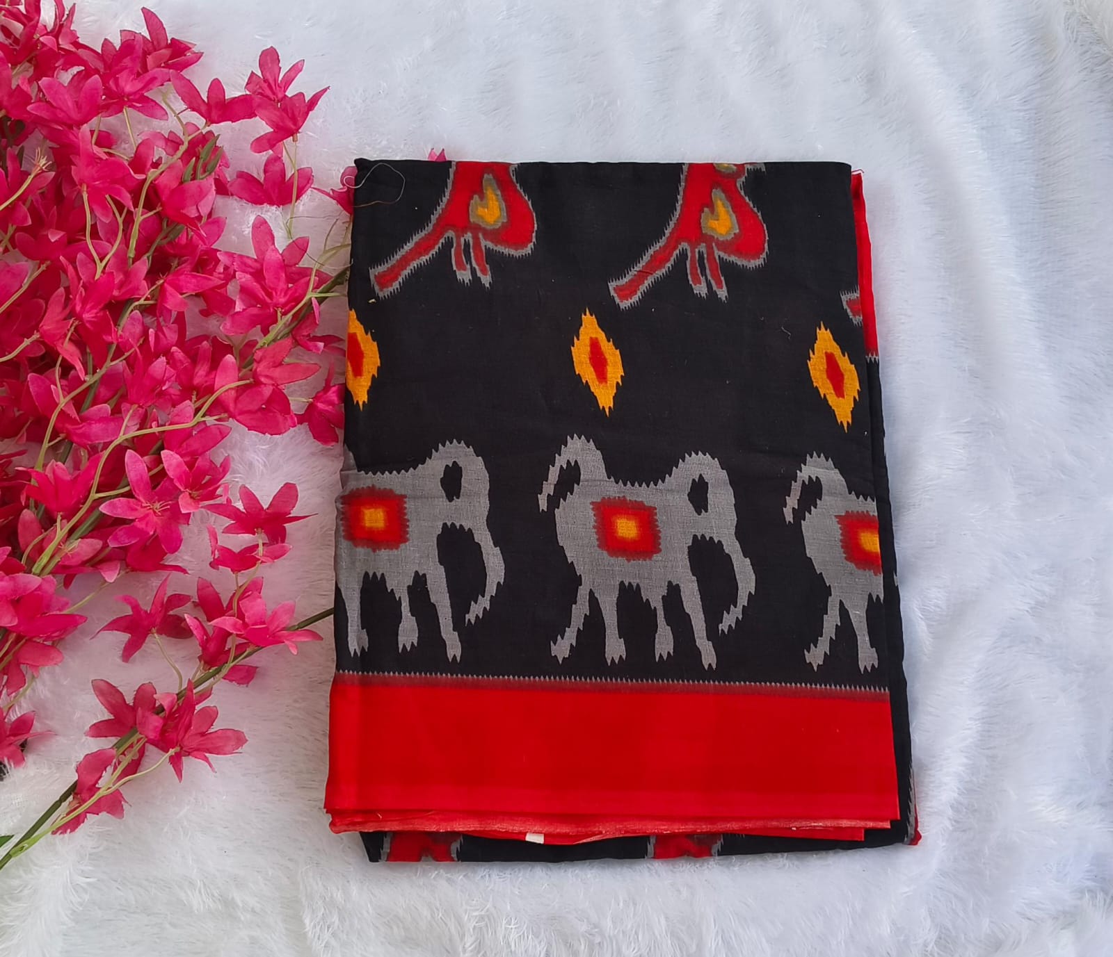Black Printed Saree Material – Mulmul Cotton Colour – Black Length -6 Meter