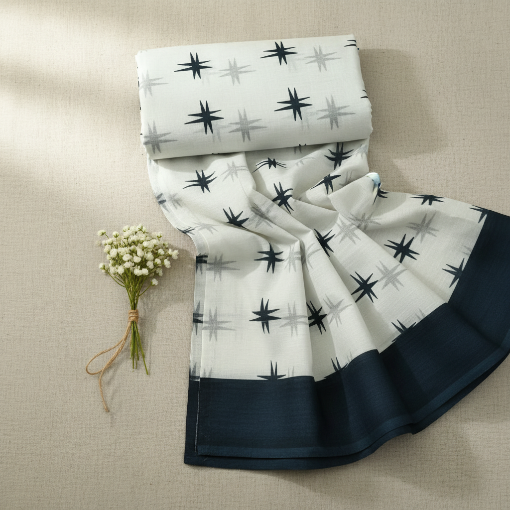 Off White Mulmul Cotton Saree