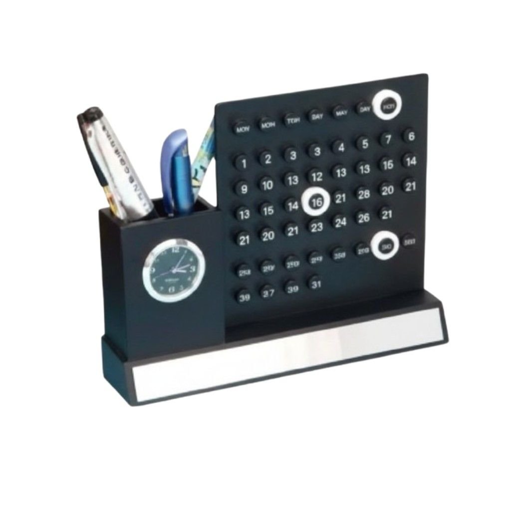 Integrated Analog Clock, Pen Holder, and Date Tracker |