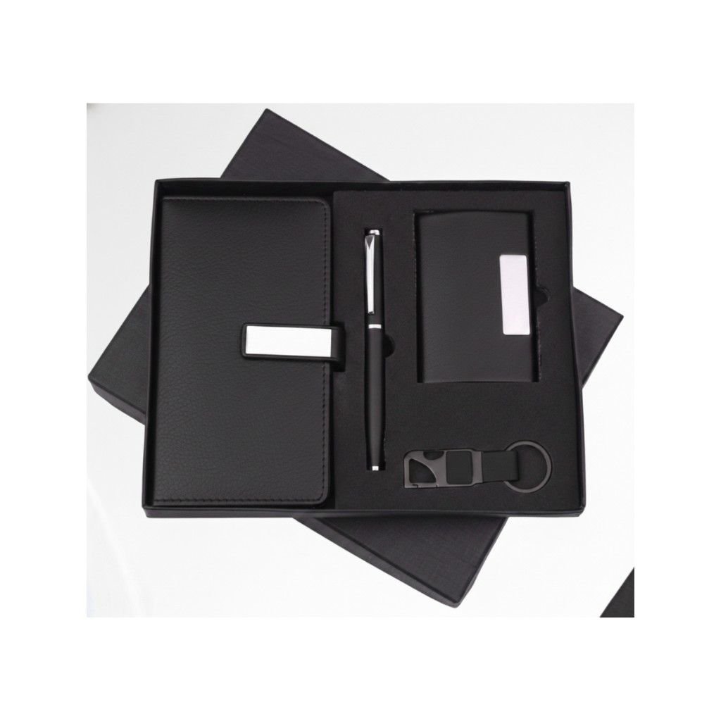 Includes a sleek, weighted metal ballpoint pen designed for a smooth writing experience and a professional look. |
