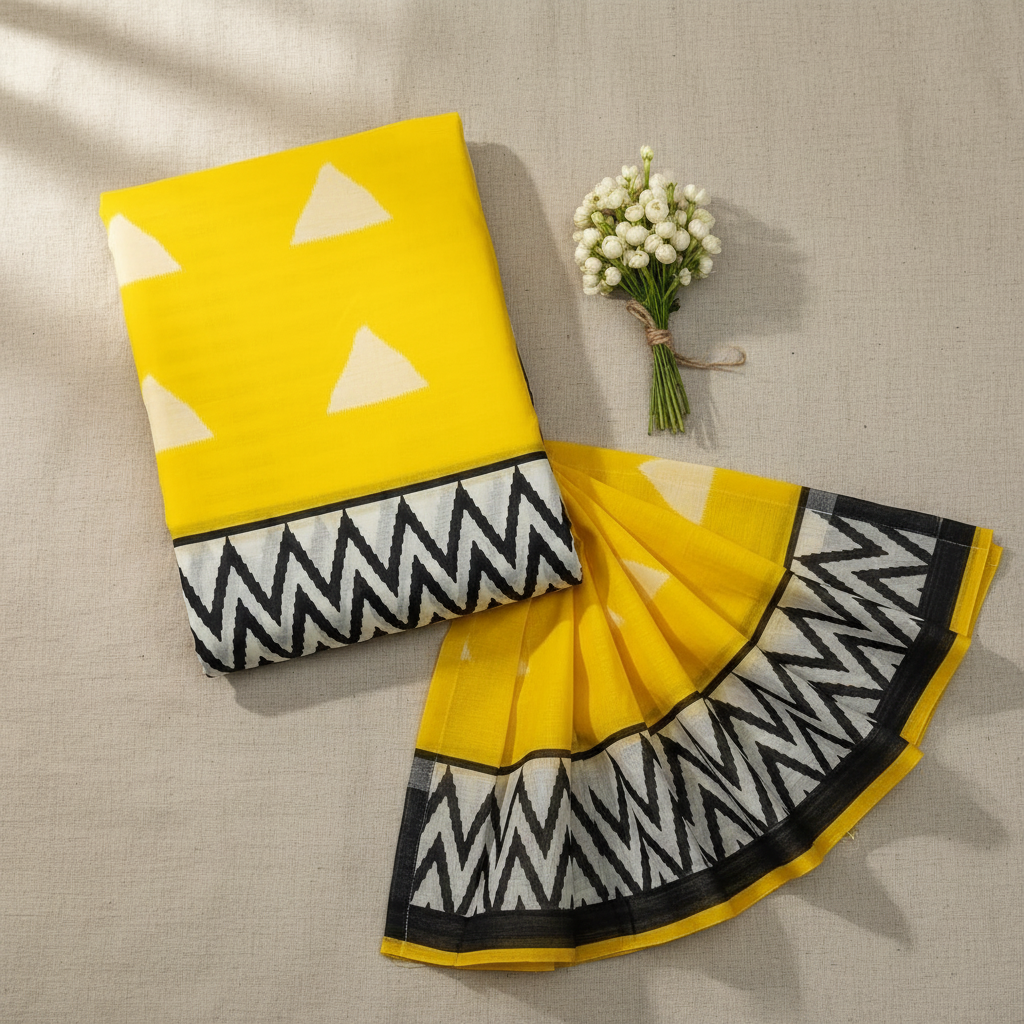 Mulmul Cotton Saree (Yellow)