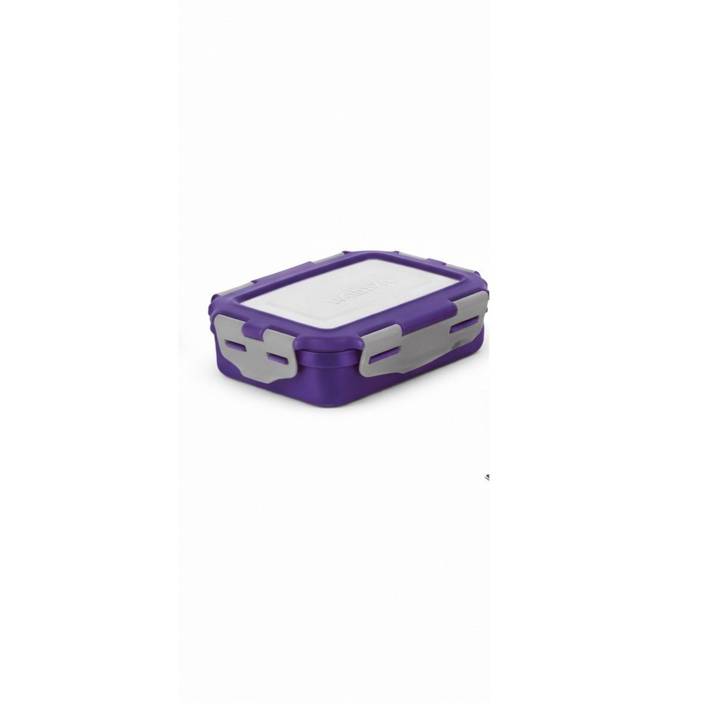 Includes a separate small stainless steel container with its own lid to keep curries or salads separate from dry food. |